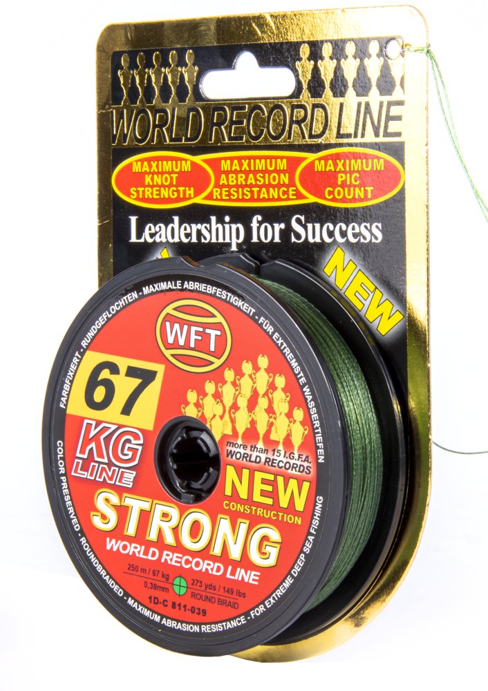 WFT KG STRONG – плетёный шнур из японских 100% HMPE-волокон сверхплотного плетения с использованием эксклюзивной технологии производства. Изначально разрабатывавшийся для морской рыбалки, также доступен и в тонких диаметрах, а потому отлично подходит для самых разных видов спиннинговой ловли в пресной и морской воде. Благодаря высокой плотности плетения шнур этой серии очень устойчив к повреждениям и порезам, при этом обладает превосходной разрывной нагрузкой, повышенной цветостойкостью (благодаря новой технологии покрытия) и почти беззвучным прохождением по кольцам.