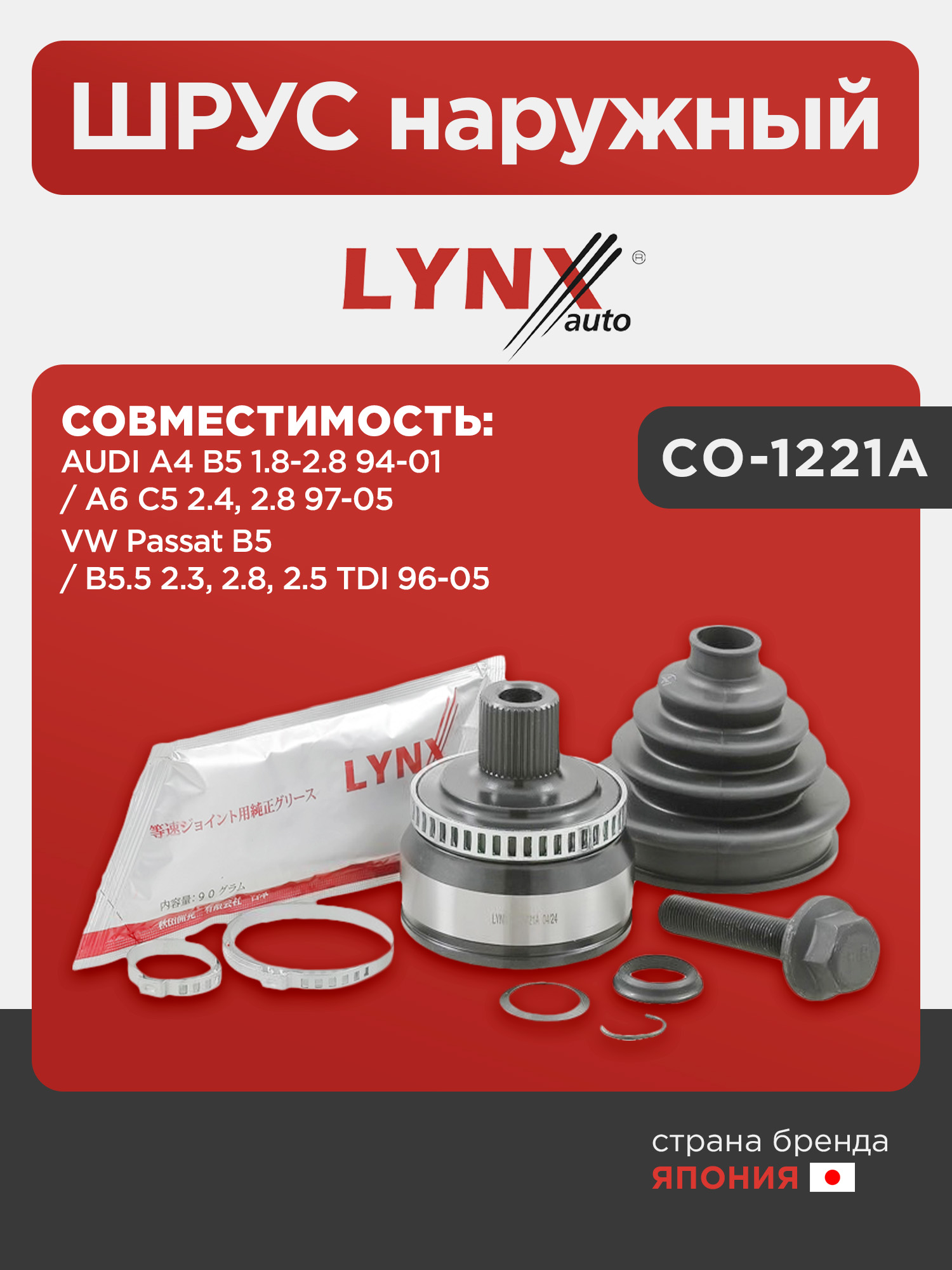 ШРУС наружный LYNXauto CO-1221A. Для AUDI A4 B5 1.8-2.8 94-01 / A6 C5 2.4, 2.8 97-05, VW Passat B5 / B5.5 2.3, 2.8, 2.5 TDI 96-05