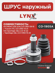 ШРУС наружный LYNXauto CO-1905A. Для: HYUNDAI ix35 (LM) 2.0 CRDi 09-15 / Tuscon (TL) 2.0 CRDi 15-21, KIA Sportage (QL) 2.0 15-22 / Sportage (QL) 2.0 CRDi 15-22