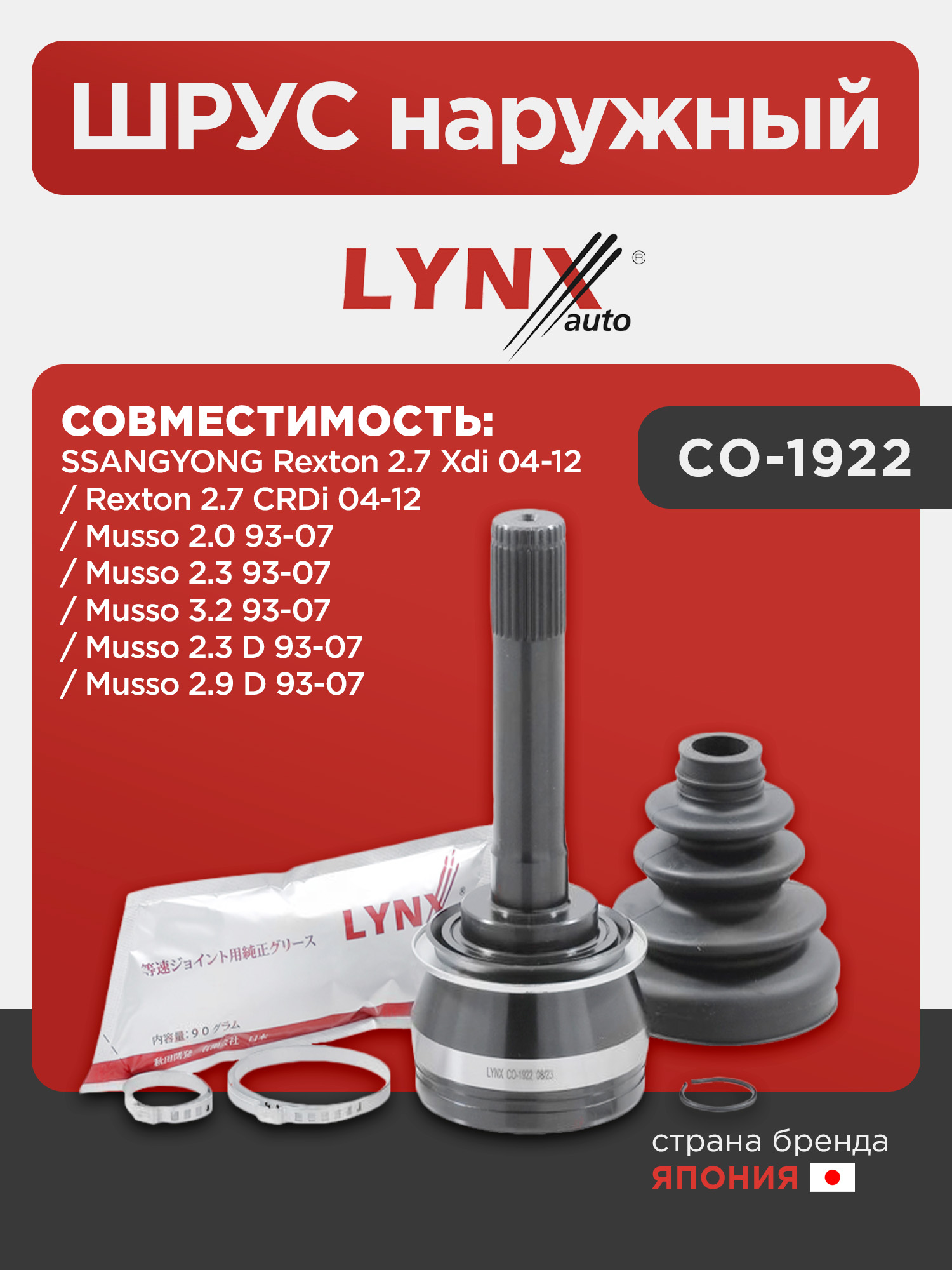 ШРУС наружный LYNXauto CO-1922. Для SSANGYONG Musso 2.0 93-07 / Musso 2.3 93-07 / Musso 3.2 93-07 / Musso 2.3 D 93-07 / Musso 2.9 D 93-07 / Rexton 2.7 Xdi 04-12 / Rexton 2.7 CRDi 04-12