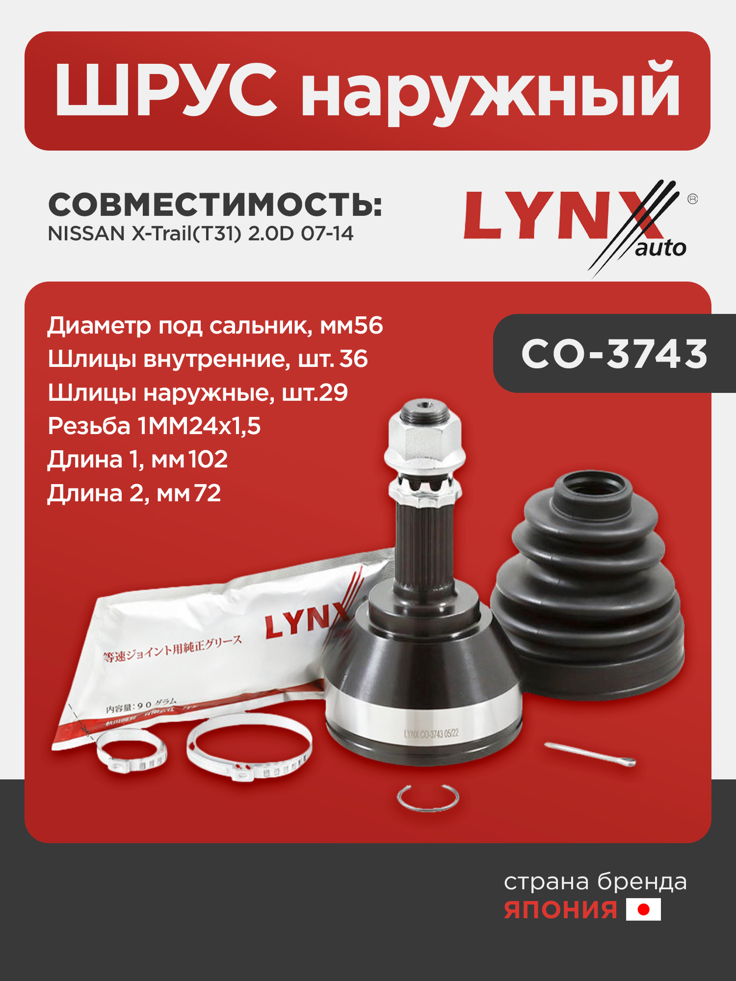 ШРУС наружный LYNXauto CO-3743. Для: NISSAN X-Trail(T31) 2.0D 07-14