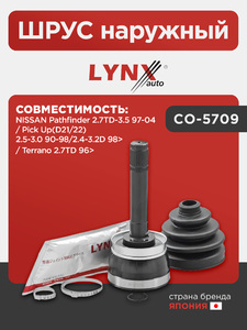 ШРУС наружный LYNXauto CO-5709. Для: NISSAN НИССАН Terrano(Террано) 2.7TD 96> / Pathfinder(Патфайндер) 2.7TD-3.5 97-04/Pick Up(D21/22) 2.5-3.0 90-98/2.4-3.2D 98>
