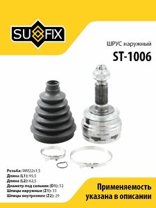 ШРУС наружный SUFIX ST-1006. Применение: CHEVROLET Lanos 1.6 05>, DAEWOO Espero 95-99/Lanos 1.6 97> / Nubira 1.6-2.0 97>.