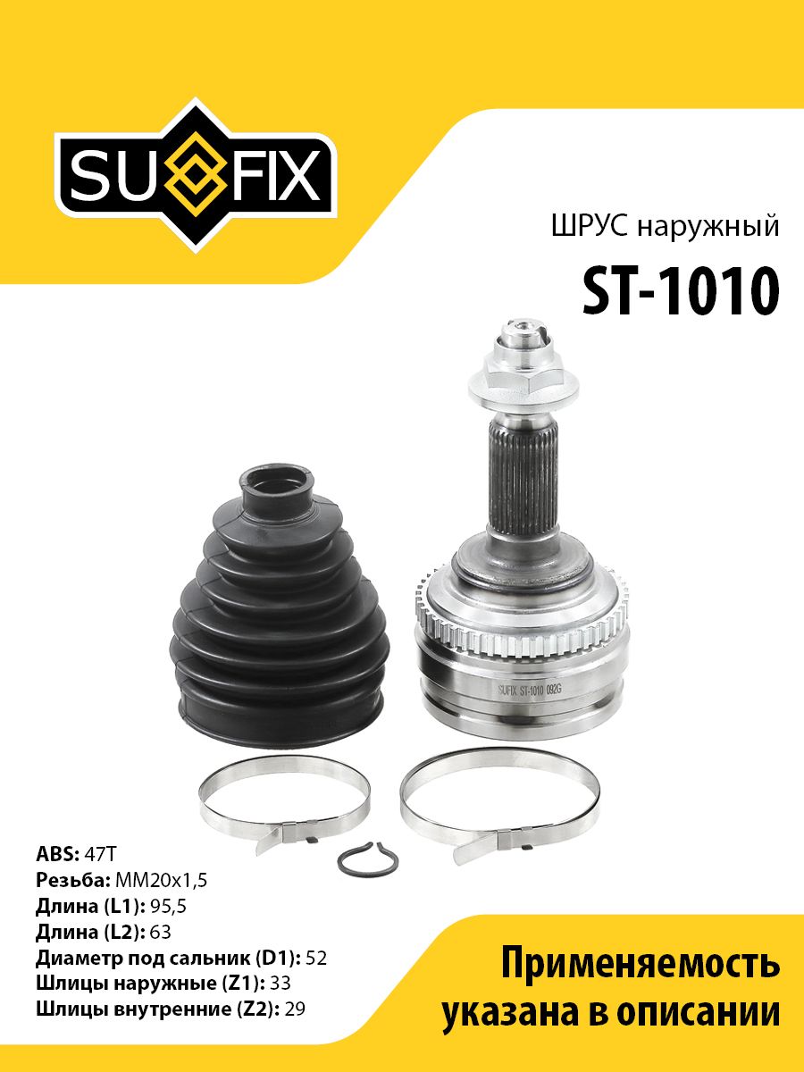 ШРУС наружный SUFIX ST-1010. Применение: DAEWOO Lanos 1.6 97> / Nubiria 1.6/2.0 97>.