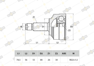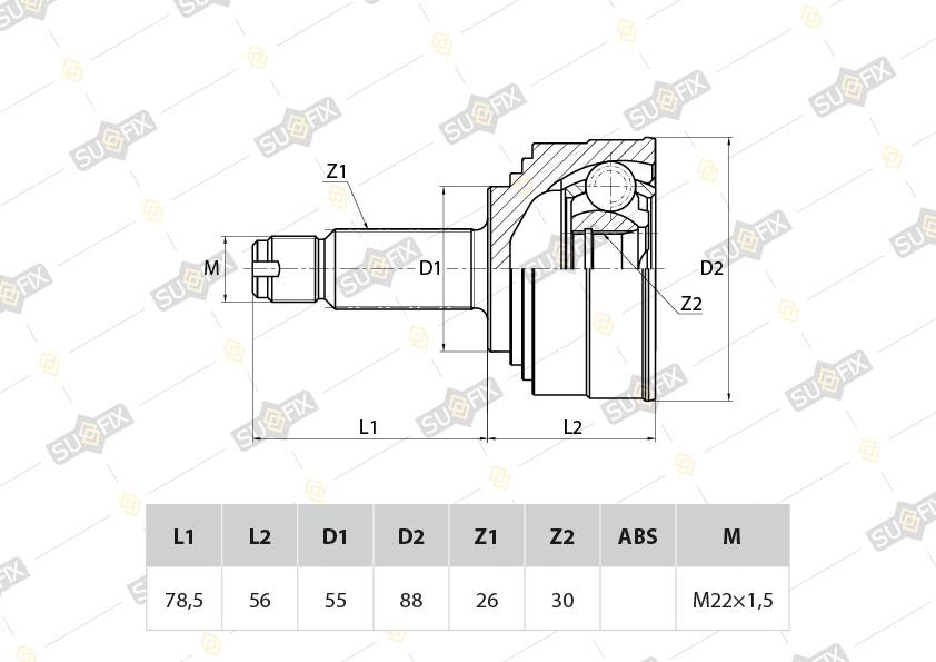 ШРУС наружный SUFIX ST-1019. Применение: HONDA Civic 1.3-1.5 91-95 / 1.6 94-00