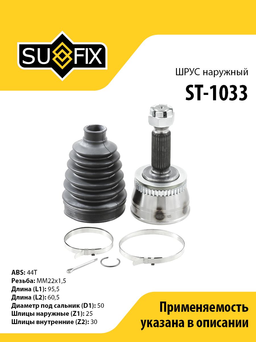 ШРУС наружный SUFIX ST-1033. Применение: HYUNDAI Elantra(XD) 1.6 00> / Matrix 1.6-1.8 01>.