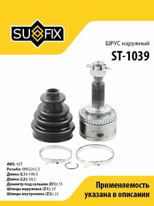 ШРУС наружный SUFIX ST-1039. Применение: NISSAN Almera(N16) 1.5 00>.