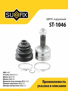 ШРУС наружный SUFIX ST-1046. Применение: HYUNDAI Getz 1.3-1.6 02>.
