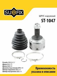 ШРУС наружный SUFIX ST-1047. Применение: HONDA Civic(FN/FK) 1.4-1.8 06>.