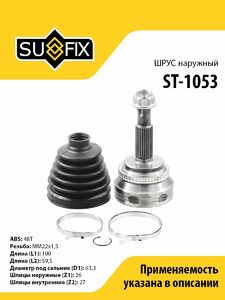 ШРУС наружный SUFIX ST-1053. Применение: TOYOTA Camry(V40) 2.4 06>.