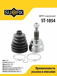 ШРУС наружный SUFIX ST-1054. Применение: TOYOTA Camry(V40) 3.5 06>, LEXUS RX330 03-05 / RX350 06-08.