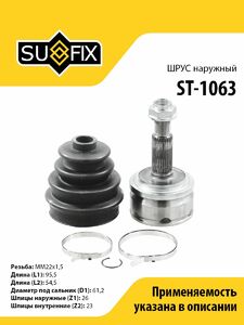 ШРУС наружный SUFIX ST-1063. Применение: TOYOTA Auris(E150) 1.33-1.6 06> / Corolla(E150) 1.33-1.6 06>.