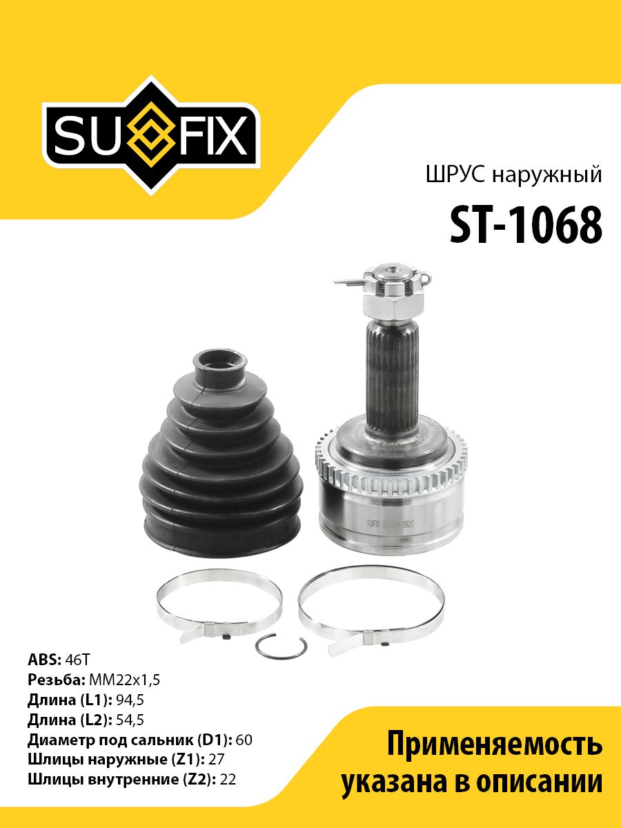 ШРУС наружный SUFIX ST-1068. Применение: HYUNDAI Elantra(HD) 1.6-2.0 06-11.
