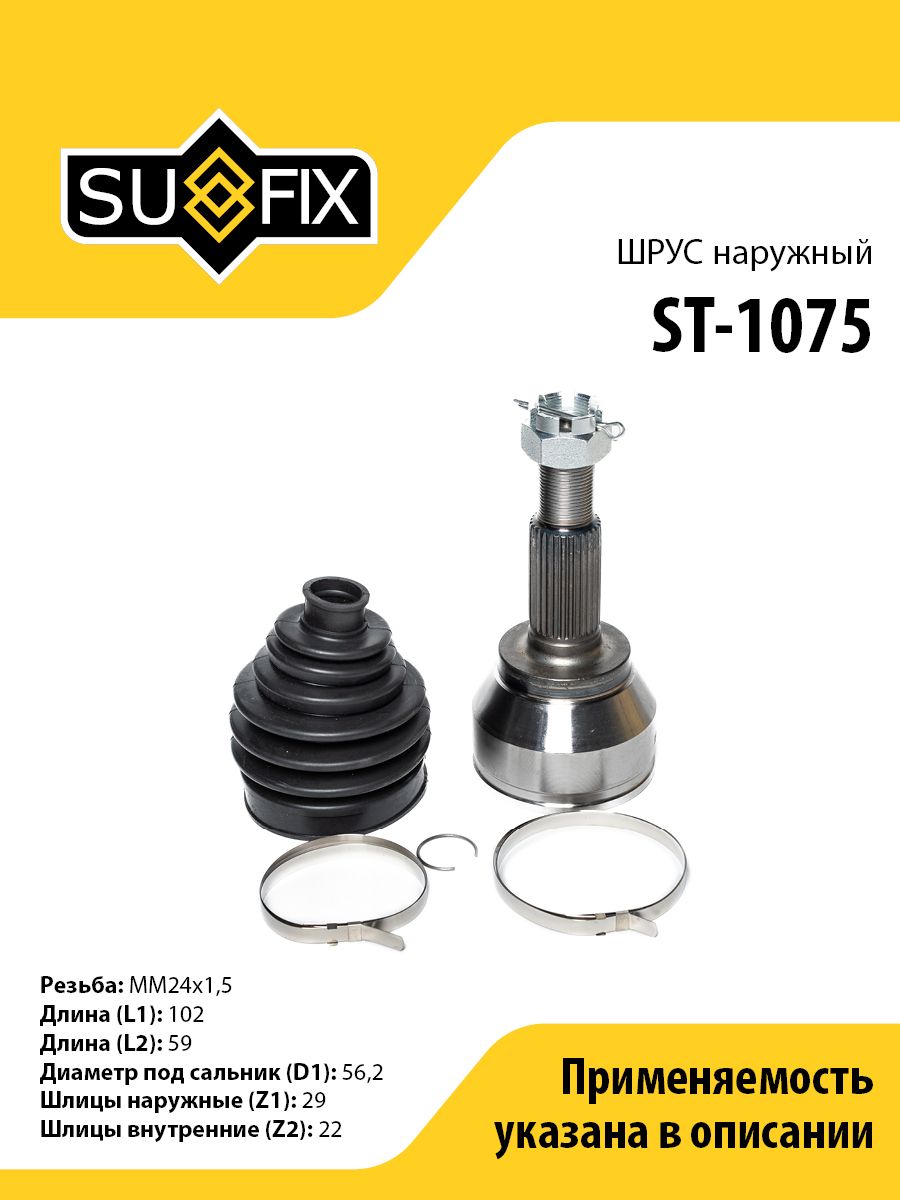 ШРУС наружный SUFIX ST-1075. Применение: NISSAN Juke 1.6 10>.