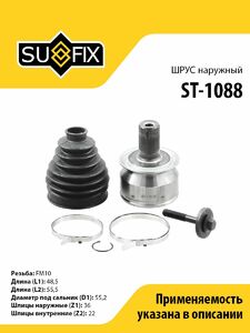 ШРУС наружный SUFIX ST-1088. Применение: MAZDA 3 1.5-2.0 >06.