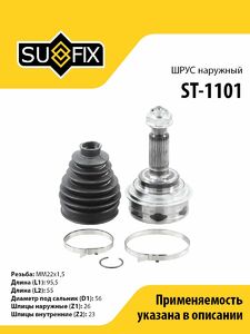 ШРУС наружный SUFIX ST-1101. Применение: TOYOTA Caldina 1.8 92-02/Carina 1.6-2.0D 92-97/Starlet 1.3 96-99.