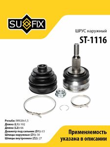 ШРУС наружный SUFIX ST-1116. Применение: VW Transporter 5 1.9TD-2.0D 03>.
