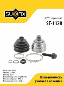 ШРУС наружный SUFIX ST-1128. Применение: VW Transporter 4 1.9D-2.5 90-03 .