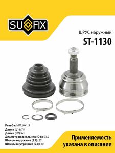 ШРУС наружный SUFIX ST-1130. Применение: VW Caddy II 1.9D 95> / Golf III 1.6-2.0 91> / Passat 1.6-2.0 88-96.