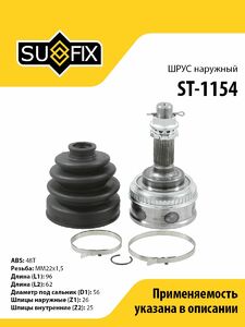 ШРУС наружный SUFIX ST-1154. Применение: TOYOTA Celica 2.0 93-99, LEXUS RX300 00-03.