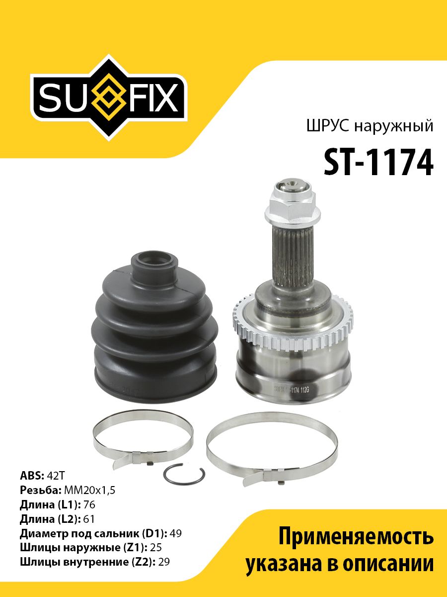 ШРУС наружный SUFIX ST-1174. Применение: SUZUKI Baleno 1.9TD 98-02/Liana 1.3-1.6 02>.