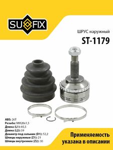 ШРУС наружный SUFIX ST-1179. Применение: RENAULT Kangoo 1.2-1.9D 97> / Clio II 1.2-1.9D 98>.