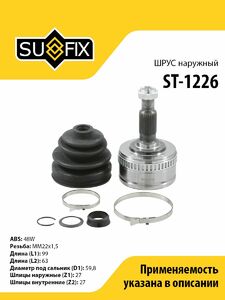 ШРУС наружный SUFIX ST-1226. Применение: MERCEDES-BENZ Vito(W638) 2.3-D 96-03.
