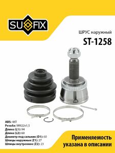 ШРУС наружный SUFIX ST-1258. Применение: HYUNDAI Tucson(JM) 2.0-2.7 06-10.