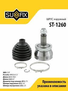 ШРУС наружный SUFIX ST-1260. Применение: HYUNDAI Santa Fe(DM) 2.4 12>, KIA Sorento(XM) 2.4 09>.