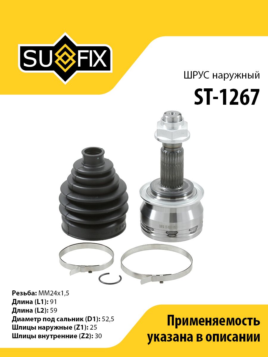 ШРУС наружный SUFIX ST-1267. Применение: CHEVROLET Aveo(T250/T300) 1.2-1.6 06> / Cobalt 1.5 13>.