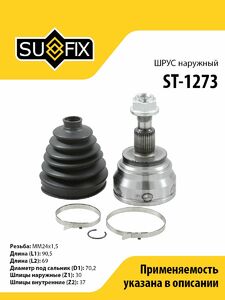 ШРУС наружный SUFIX ST-1273. Применение: MERCEDES-BENZ GL320D-500(X164) 09> / ML280D-500(W164) 05> / R280-500(W251) 06>.