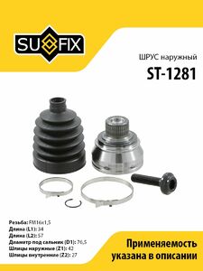 ШРУС наружный SUFIX ST-1281. Применение: AUDI A4 1.8-3.2 07-15 / A5 1.8-3.2 07-17 / Q5 2.0-3.2 08>.