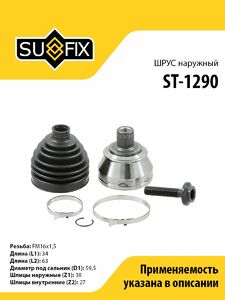 ШРУС наружный SUFIX ST-1290. Применение: AUDI A6 2.0D-3.2 04-11 / A8 4.2 02-10.