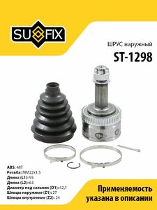 ШРУС наружный SUFIX ST-1298. Применение: KIA Sportage(JE) 2.0-2.0D 04>.