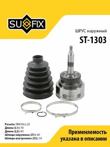 ШРУС наружный SUFIX ST-1303. Применение: SSANGYONG Actyon I 2.0D 05> / Kydon 2.0D-2.3 05> / Rexton II 2.7D-3.2 02>.
