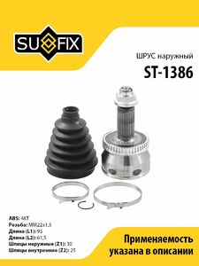 ШРУС наружный SUFIX ST-1386. Применение: KIA Opitma(JF) 2.0-2.4 15>, HYUINDAI Sonata(LF) 2.0-2.4 14>.