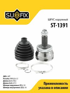 ШРУС наружный SUFIX ST-1391. Применение: KIA Opitma(JF) 2.0 15>.