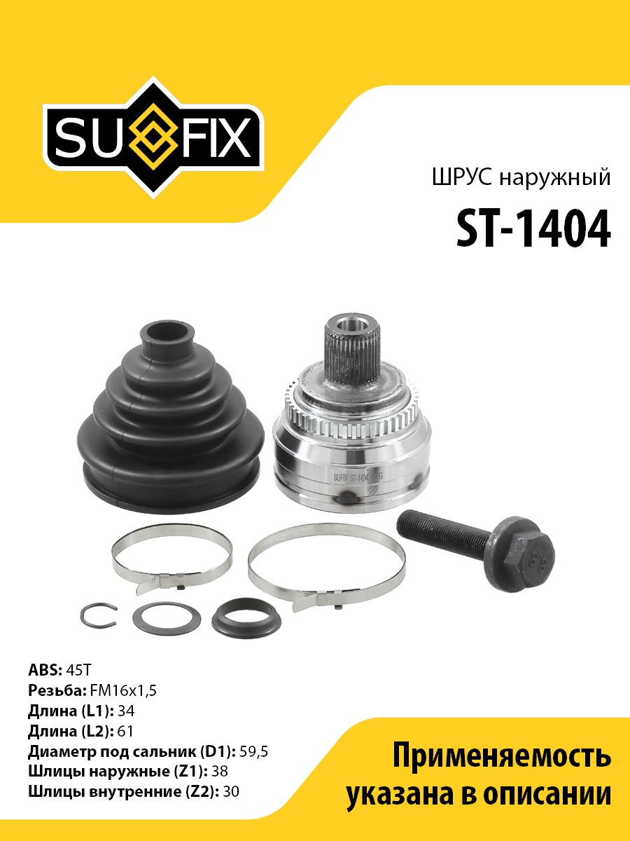 ШРУС наружный SUFIX ST-1404. Применение: AUDI A6 2.0-2.8 94-97 / 100 2.0-2.8 90-94 / 80 2.0-2.8 91-94.