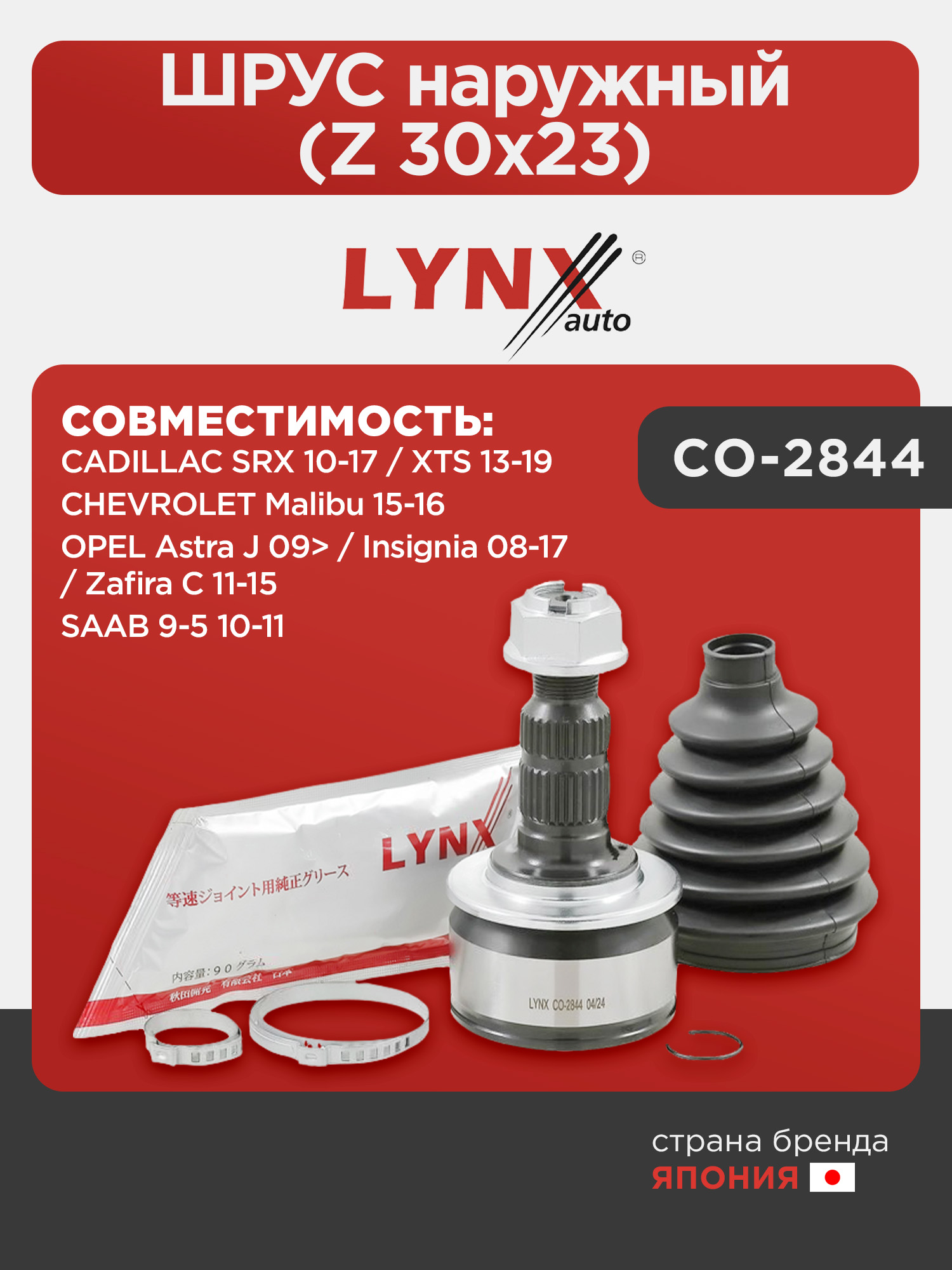 ШРУС наружный (Z 30x23) LYNXauto CO-2844 для CADILLAC SRX 10-17/XTS 13-19,CHEVROLET Malibu 15-16,OPEL Astra J 09>/Insignia 08-17/Zafira C 11-15,SAAB 9-5 10-11