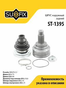 ШРУС наружный задний SUFIX ST-1395. Применение: BMW X5(E53) 3.0D-4.4 00-06.
