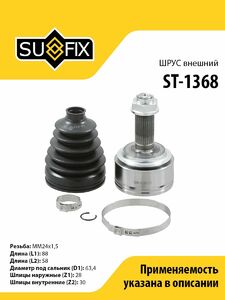 ШРУС внешний SUFIX ST-1368. Применение: HONDA FR-V 1.7-2.0 04-09 / Stepwagon 2.0 09-15.