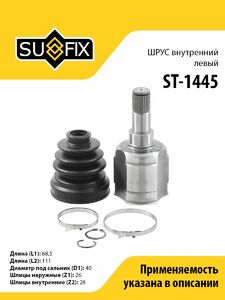 ШРУС внутренний L SUFIX ST-1445. Применение: FORD Mondeo IV 1.6-2.3 07> / Galaxy/S-Max 1.6-2.3 06>.