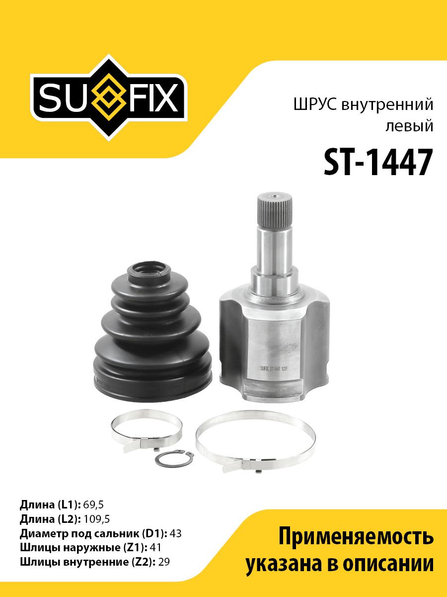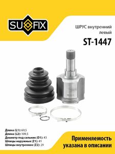 ШРУС внутренний L SUFIX ST-1447. Применение: CITROEN Jumper 2.2D 06>, FIAT Ducato 2.2D-2.3D 06>, PEUGEOT Boxer 2.2D 06>.