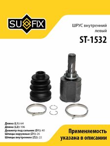 ШРУС внутренний L SUFIX ST-1532. Применение: RENAULT Sandero 1.6 14-21, LADA Xray 1.6-1.8 15-21.