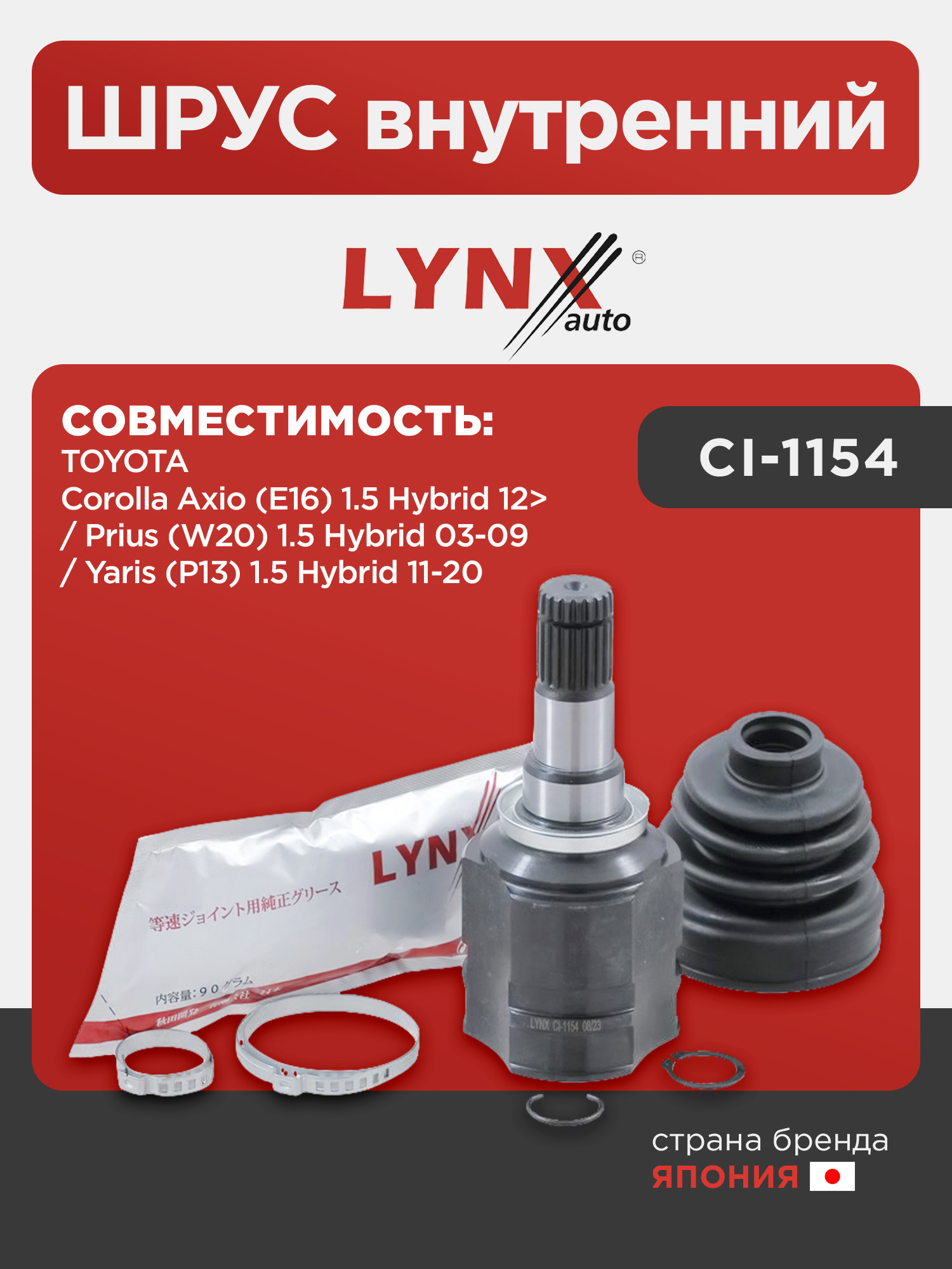 ШРУС внутренний LYNXauto CI-1154. Для: TOYOTA Тойота Prius(Приус) (W20) 1.5 Hybrid 03-09 / Yaris(Ярис) (P13) 1.5 Hybrid 11-20 / Corolla(Королла) Axio (E16) 1.5 Hybrid 12>