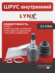 ШРУС внутренний LYNXauto CI-1154. Для: TOYOTA Prius (W20) 1.5 Hybrid 03-09 / Yaris (P13) 1.5 Hybrid 11-20 / Corolla Axio (E16) 1.5 Hybrid 12>