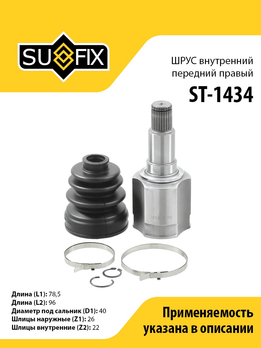 ШРУС внутренний передний R SUFIX ST-1434. Применение: SUZUKI Grand Vitara II 1.6-2.7 05>.