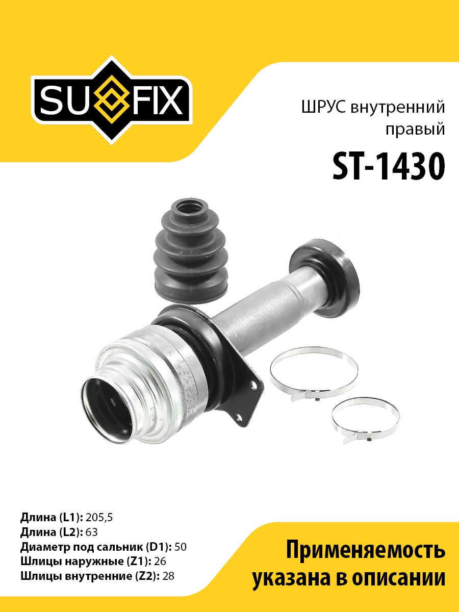 ШРУС внутренний R SUFIX ST-1430. Применение: VW Transporter V 1.9D-2.5D 03>.