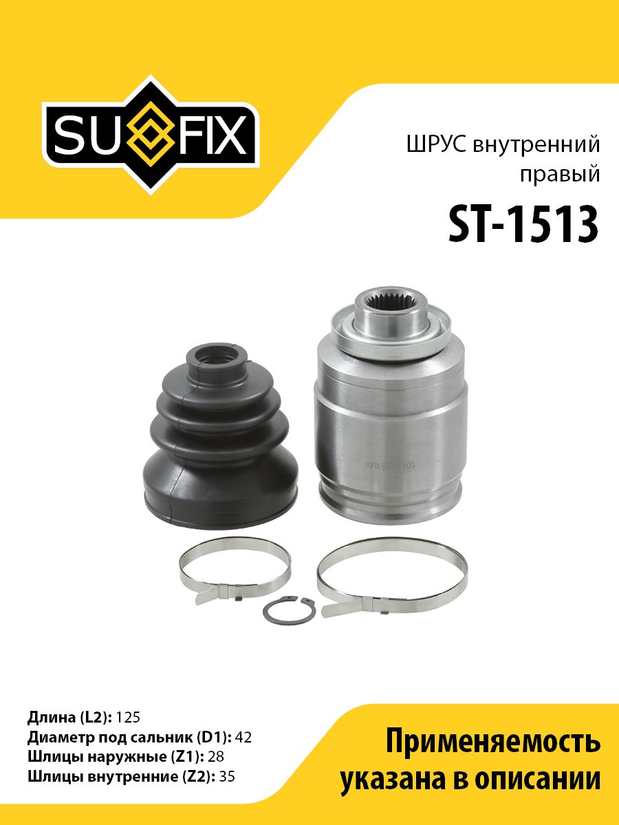 ШРУС внутренний R SUFIX ST-1513. Применение: HYUNDAI Santa Fe(SM/CM) 2.0-2.7 01-12 .