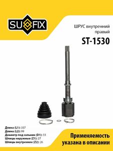 ШРУС внутренний R SUFIX ST-1530. Применение: NISSAN Qashqai(J11) 2.0 14>.